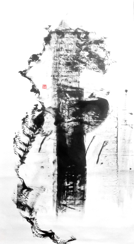 The red stamp that stands out in the art piece symbolizes life and vitality with the purest energy. The bold and interesting stroke in the middle illustrates the ascending of spirituality, from dark and polluted to pure and then fading into the cosmic energy above.