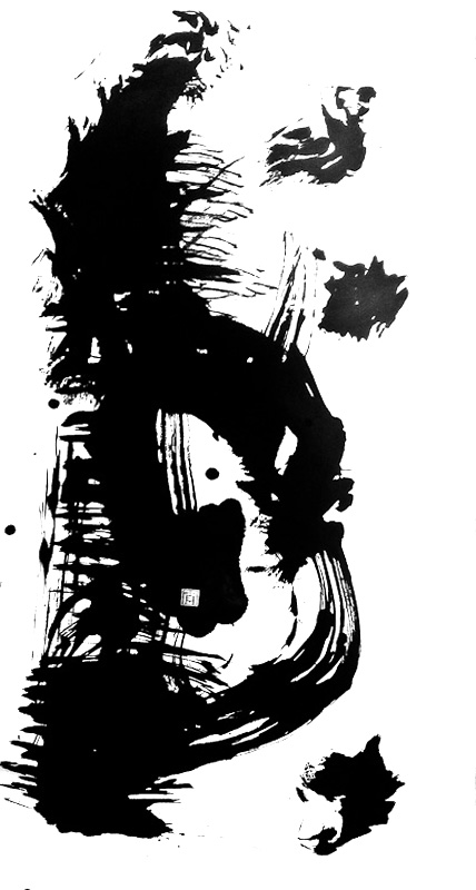 An abstract painting of the moment of breaking through a strong wall that has been blocking your life. The force penetrates into and shocks through the wall, denting it and is just about to tear through the wall. It symbolizes the force and power to break through and get round all obstacles in life.