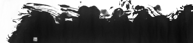 An abstract painting of the huge sea waves, each carrying its own character, power, weight and colours. Or are they actually mountain ranges, connecting with each other and inseparable from each other? Anyone up for climbing these mountains, challenging, enjoying and being embraced by the all-time colourful and amazing nature? The artist stamp shows that the artist is going to swimming between the mountains, maybe a climb afterwards!