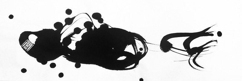 An abstract painting of a floating man drifting peacefully through space and time. The man is facing upward with his eyes wide open observing the changes around him. In a way, he looks like a baby in a womb waiting to be born, or reborn in this case. The man wants to study his world from anew, be reborn and live anew. The man gets tired of the old boring life and values in his world. By opening his mind and brain, he is ready to embrace new values and regain joy in life. The artist stamp is right on the back of his brain, as a sign that the artist shares his views and is witnessing this special moment of life.